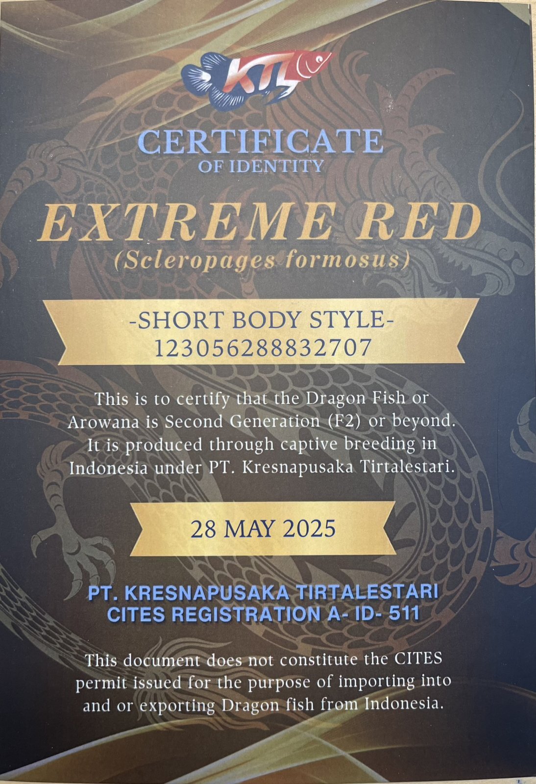 国際希少野生動植物登録票:250-004119